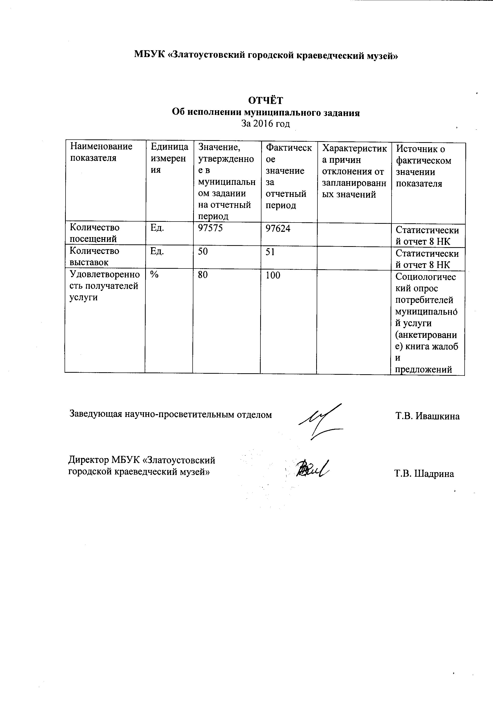 ОТЧЕТ о выполнении муниципального задания МБУК "Златоустовский городской краеведческий музей" за 2015 год435