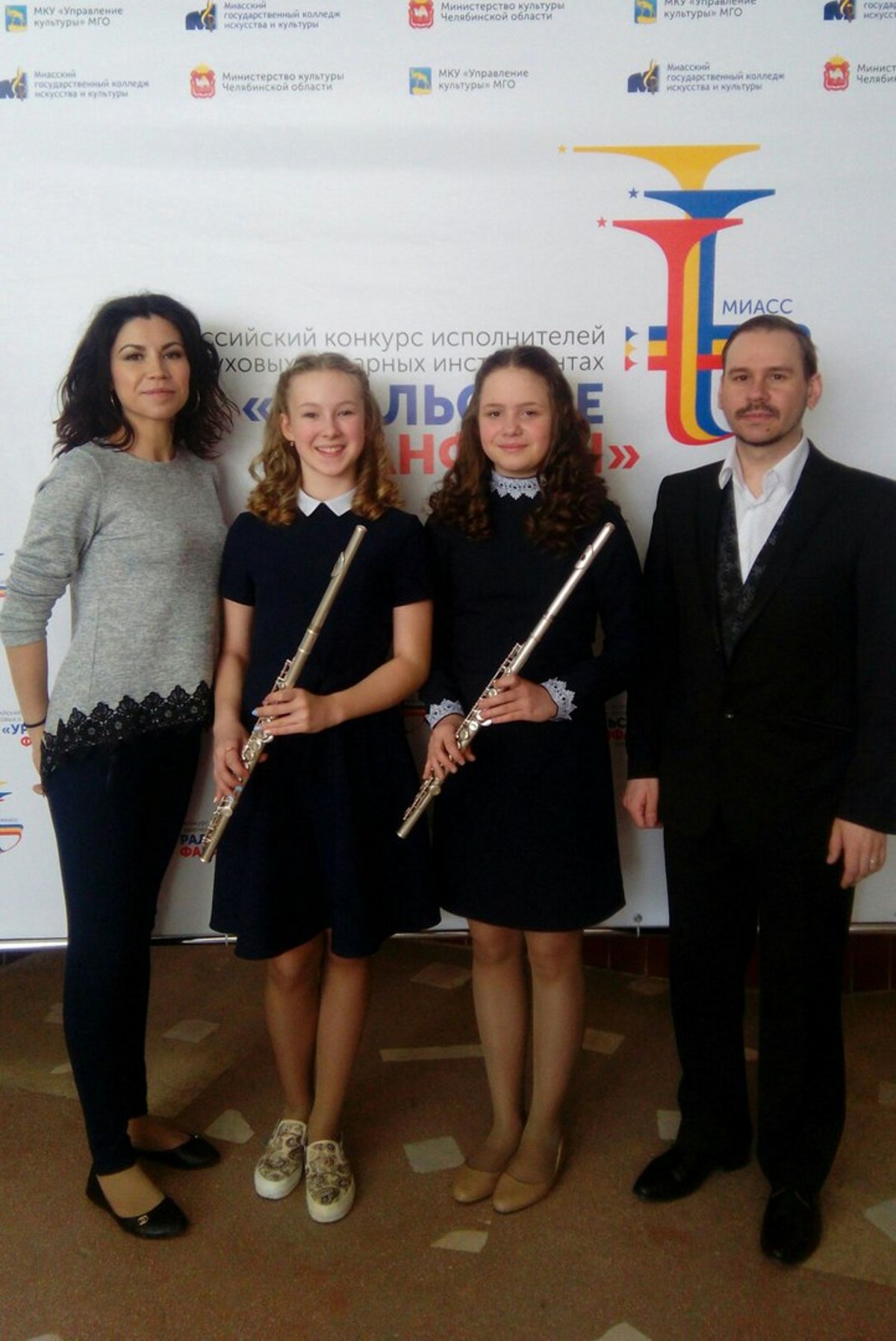 Лауреатами III степени стали: дуэт флейт Житнева Елена, Хайрулина Кристина, преподаватель Евдокимова Асия Рафаилевна, концертмейстер Немцев Дмитрий Николаевич.