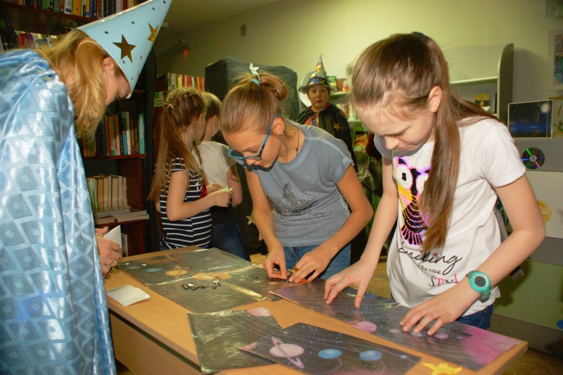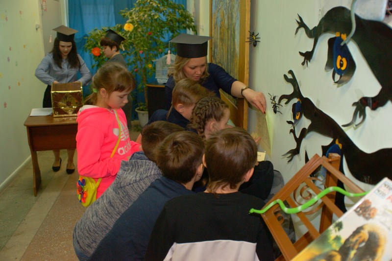 Фантазия и креативность библиотекарей не знала границ. На кафедре Пещероведения «студенты» изучали древнюю письменность, «спускались» в пещеру, где производили раскопки и спелеологические изыскания. На факультете Звездологии и планетоведения постигали тайны Вселенной. В Центре Живой и мертвой воды проводили интересные опыты с водой, а совсем юные «ученики» создавали морских обитателей с помощью ученых-библиотекарей и отгадывали авторов, произведения которых связанны с водной стихией.