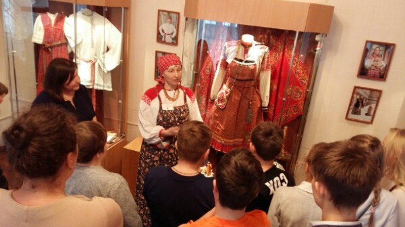 Гостями на открытии стали девчонки и мальчишки из школы № 9, которым выпала честь одними из первых увидеть и услышать о праздничных нарядах разных народов, проживающих на гостеприимной уральской земле, смогли поиграть в забытые народные игры. Наша гостья из Миасского музея Елена Шевелева поведала ребятам об особенностях национальной одежды и научила ребят русской игре «Платочек», и даже сама с детским задором поиграла с ними.