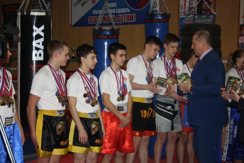 Руководитель поздравил спортсменов с многократными победами на областном и всероссийском ринге, вручил подарки и побеседовал в неформальной обстановке. Тренер кикбоксёров Пётр Боботков поблагодарил главу муниципалитета и руководство техникума в лице Марины Пономарёвой за безвозмездную аренду зала для тренировок, поддержку в поездках на соревнования и в повседневной жизни спортивной школы.
