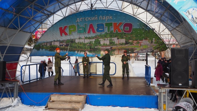 Праздничная программа посвященная Дню защитника отечества в детском парке Крылатко
