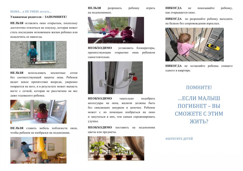 • Не оставлять окна открытыми, если дома маленький ребенок, поскольку достаточно отвлечься на секунду, которая может стать последним мгновением в жизни ребенка или искалечить её навсегда.