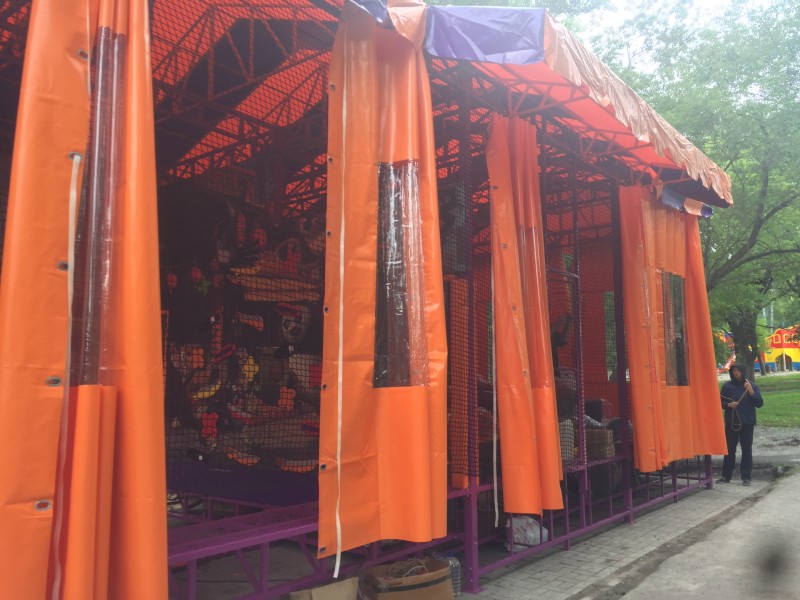 СЕРГЕЙ ЛИТВИНОВ, администратор МАУ «Златоустовские парки культуры и отдыха»: «Данная игровая площадка называется «Ниндзя-парк» включает в себя: полосу препятствий, батуты, скалодром, большую яму бассейную на более чем 1000 поролоновых кубов. Покрытие будут маты».