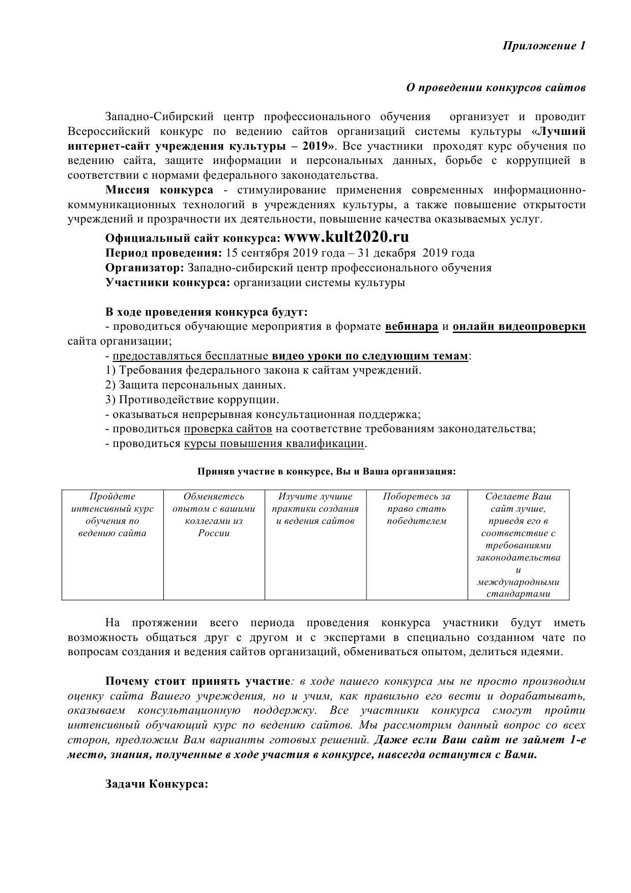 "Лучший интернет-сайт учреждения культуры – 2019"