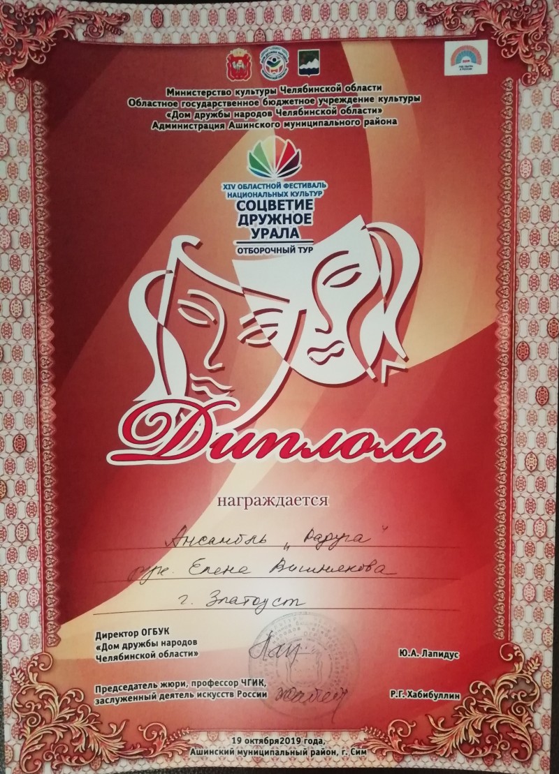 Вокальный ансамбль "Радуга" Дома культуры успешно приняли участие в XIV областном фестивале национальных культур "Соцветие дружное Урала"