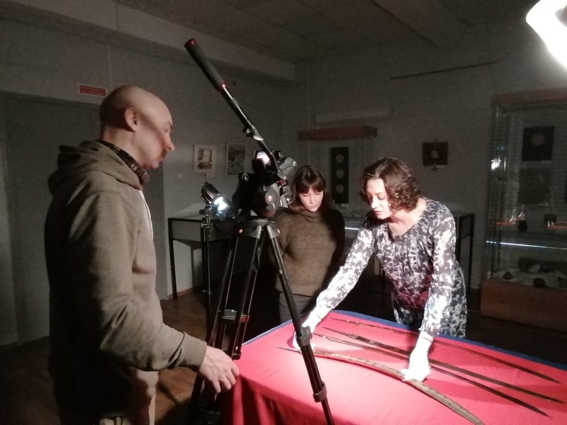 В конце января в Златоусте прошли съемки фильма о булатной стали. Съемочная группа команды «Мужская Берлога» из г. Екатеринбурга посетила и Златоустовский музей. Где, как не в главной сокровищнице города, собрать богатый материал и взять крупным планом уникальные экспонаты. Радует, что именно наш музей стал центром притяжения для специалистов в разных направлениях.