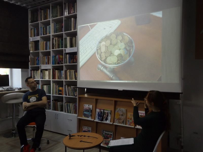 14 октября в модельной библиотеке «Аист» города Златоуста состоялась встреча с юными пользователями библиотеки талантливого мастера Ростислава Пономарева, который представил свое хобби – изделия, выполненные в технике художественной ковки по металлу. Основой события стала персональная выставка работ мастера «Песнь о металле», организованная в «Аисте» в рамках арт-проекта «Златоруки». В роли ведущей мероприятия выступила Дарья Пономарева, библиотекарь детской библиотеки №10 и сестра Ростислава.