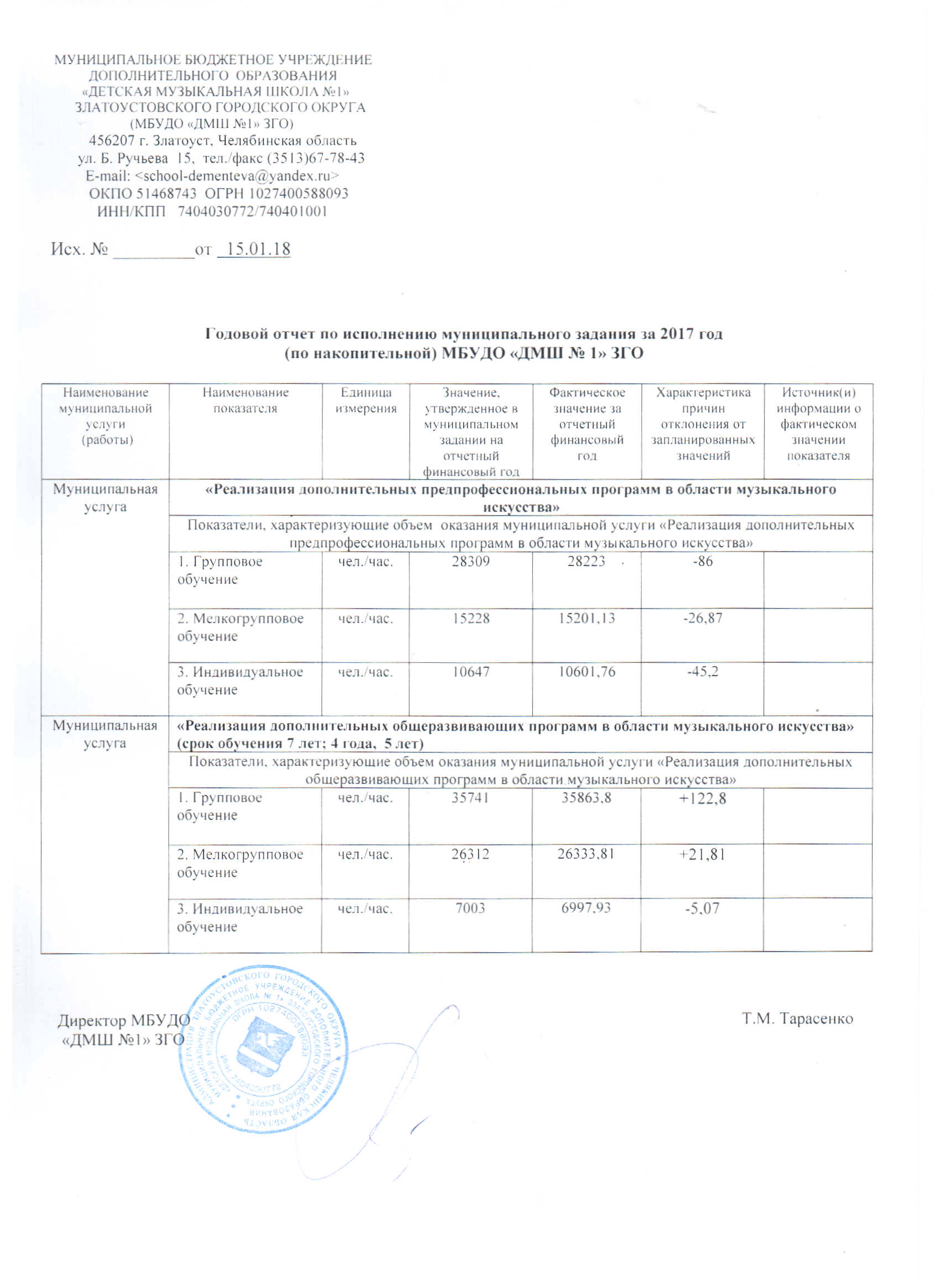 Отчет о выполнении муниципального задания МБОУ ДОД «ДМШ №1» ЗГО – 2015 года407