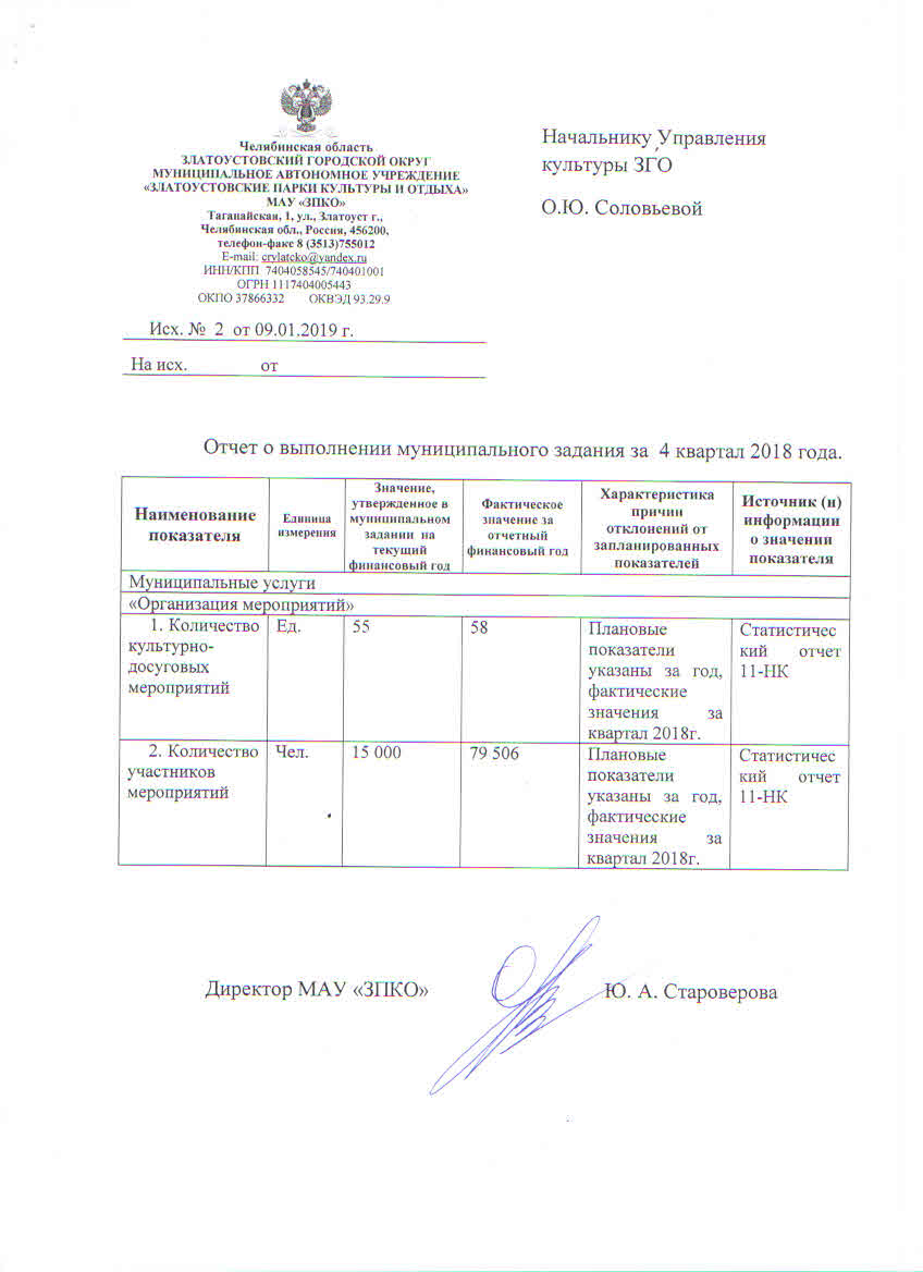 Муниципальное задание Златоустовские парки культуры и отдыха на 2025 год71