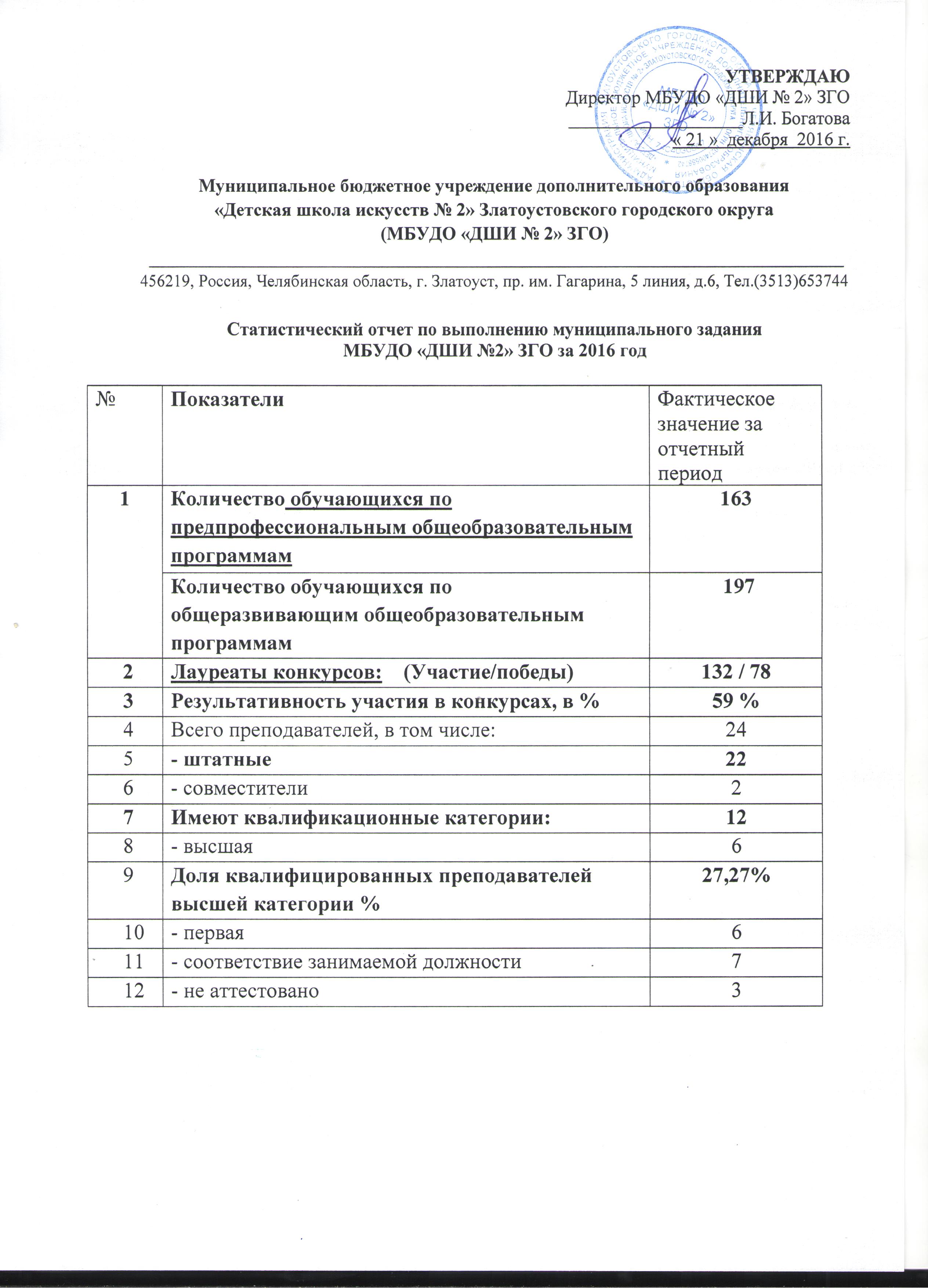 Отчет о выполнении муниципального задания МБОУ ДОД «ДШИ №2» ЗГО – 2015 года418