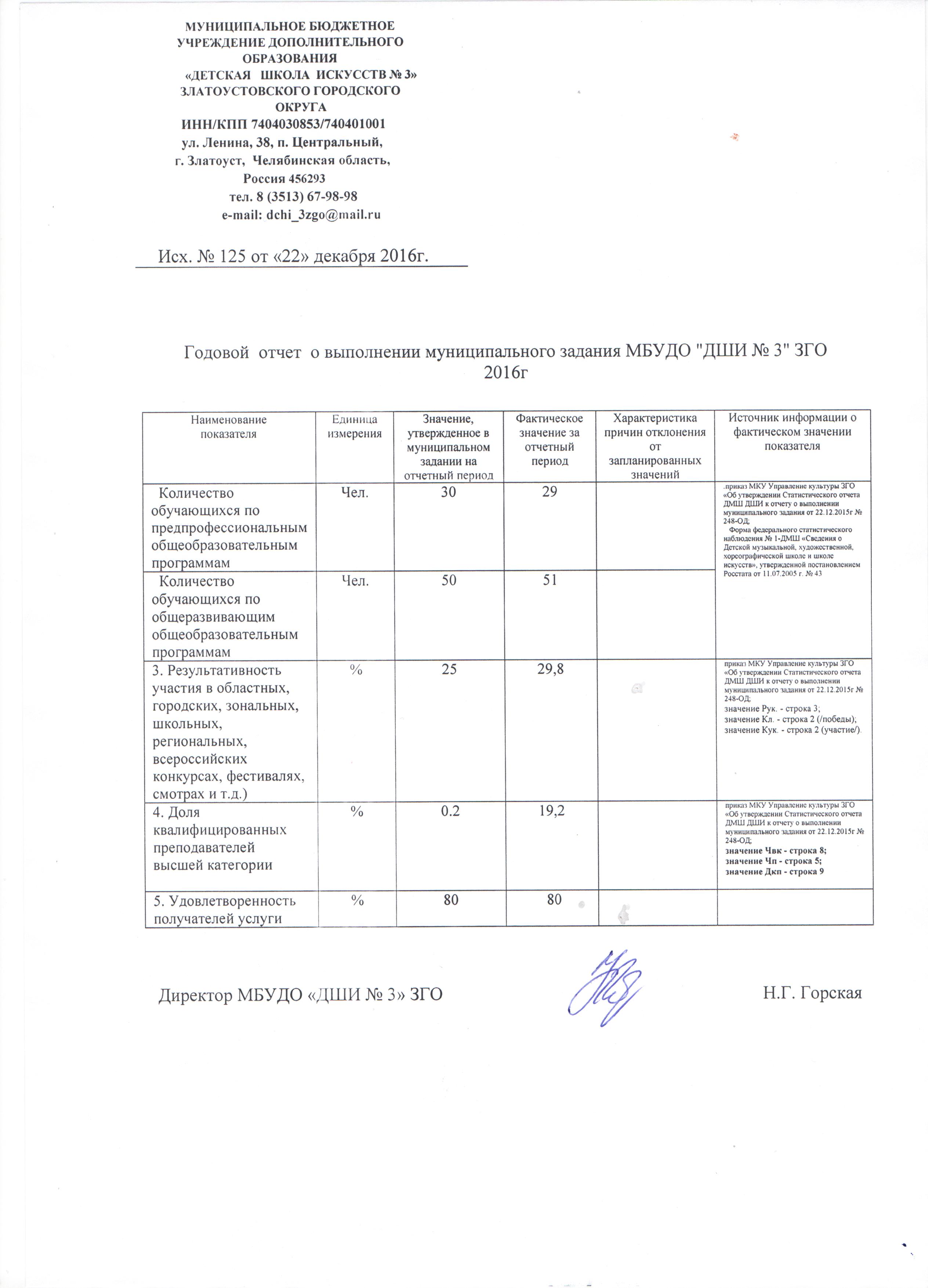 Отчет о выполнении муниципального задания МБОУ ДОД «ДМШ №3» ЗГО – 2015 год416