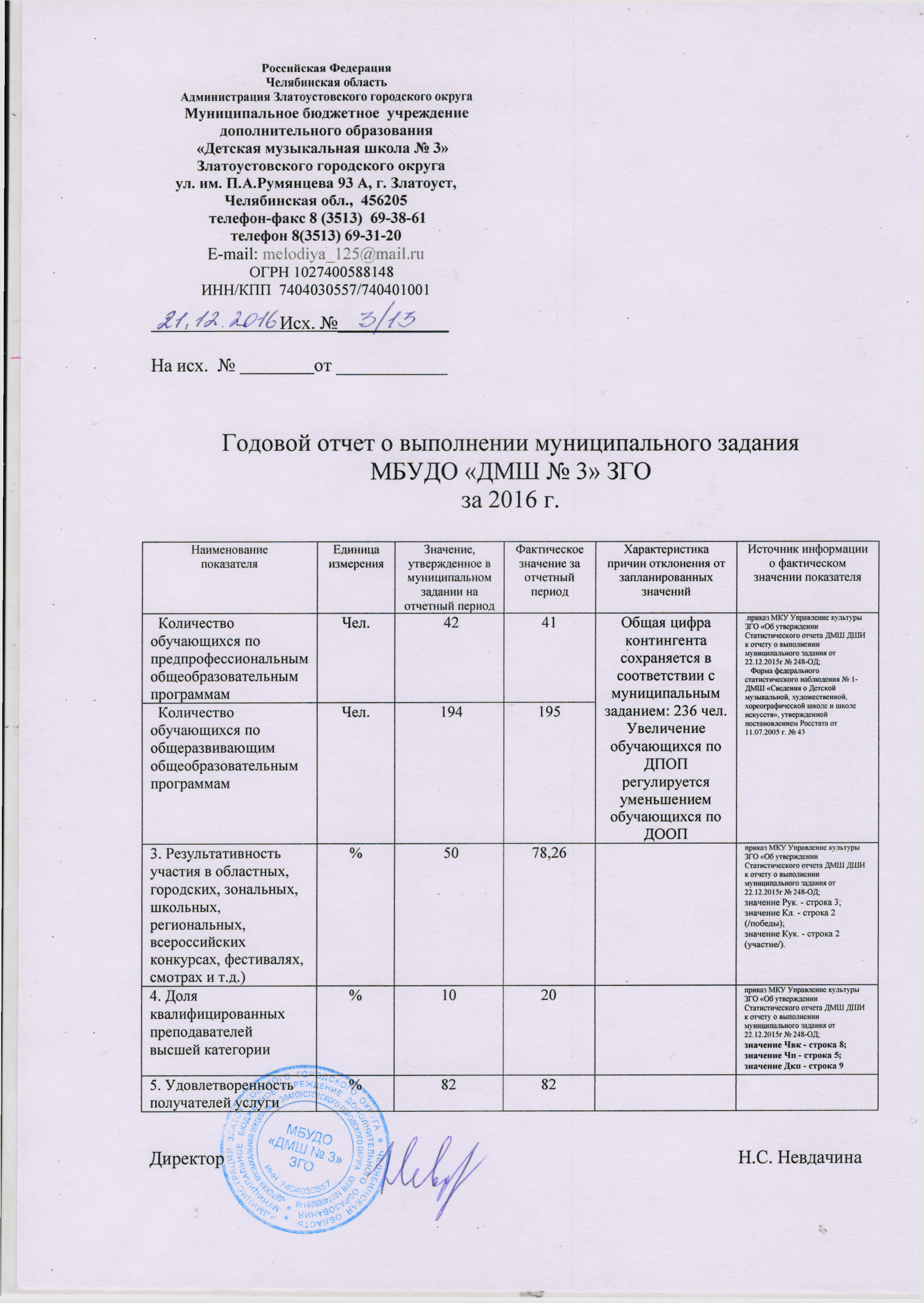 Отчет о выполнении муниципального задания МБОУ ДОД «ДШИ №3» ЗГО – 2015 года397